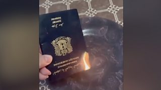 Ora guarda cosa gli succederà’, dice una donna invisibile in un video. Le fiamme lambiscono i bordi del passaporto di Omar. “Brucia bene,” dice una donna invisibile in russo nel video