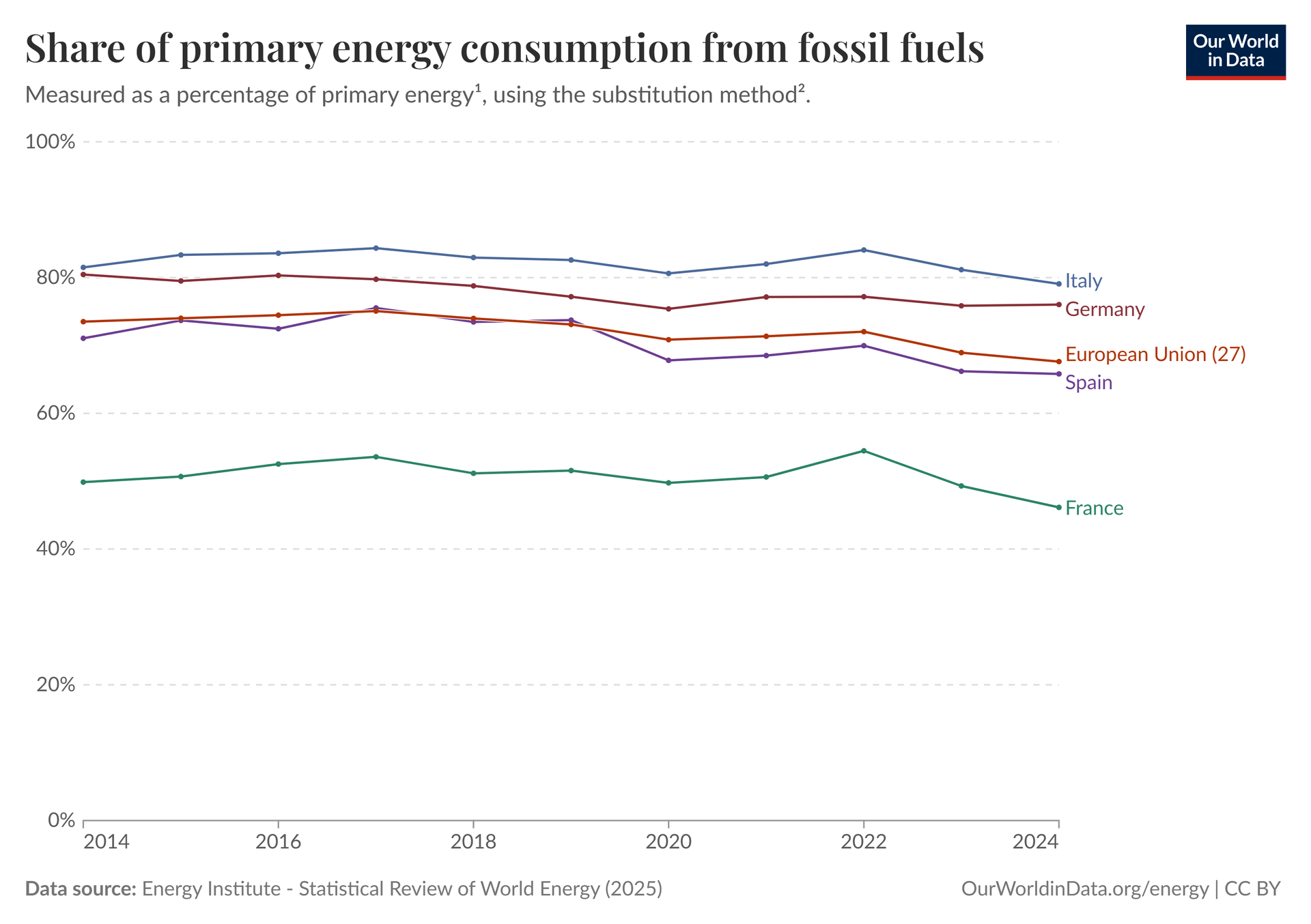 Dal lato del consumo, è innegabile che la Cina sia un modello. Ha promosso la diffusione di massa di auto elettriche o ibride ben oltre il 50% delle nuove vendite, non per preoccupazioni ambientali ma per ridurre la dipendenza da petrolio importato: e dal 2024 il consumo di greggio nella Repubblica popolare ha iniziato a scendere. Allo stesso modo, la quota di rinnovabili nell’energy mix cinese ha quasi raggiunto quella dell’Italia (17,47% contro 20,43%).